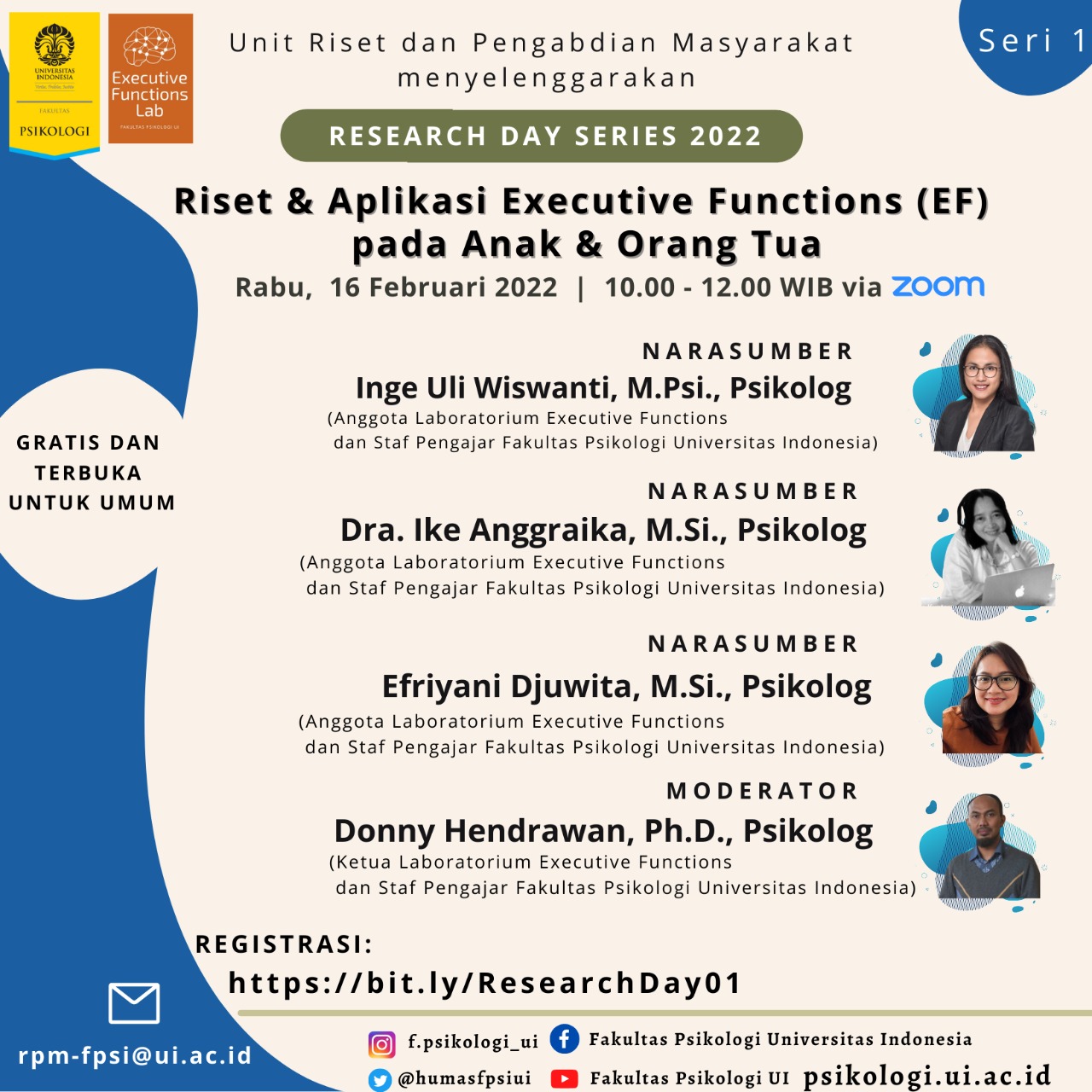 Research Day Series 2022: Seri 1 – Riset & Aplikasi Executive Functions (EF) Pada Anak Dan Orang Tua